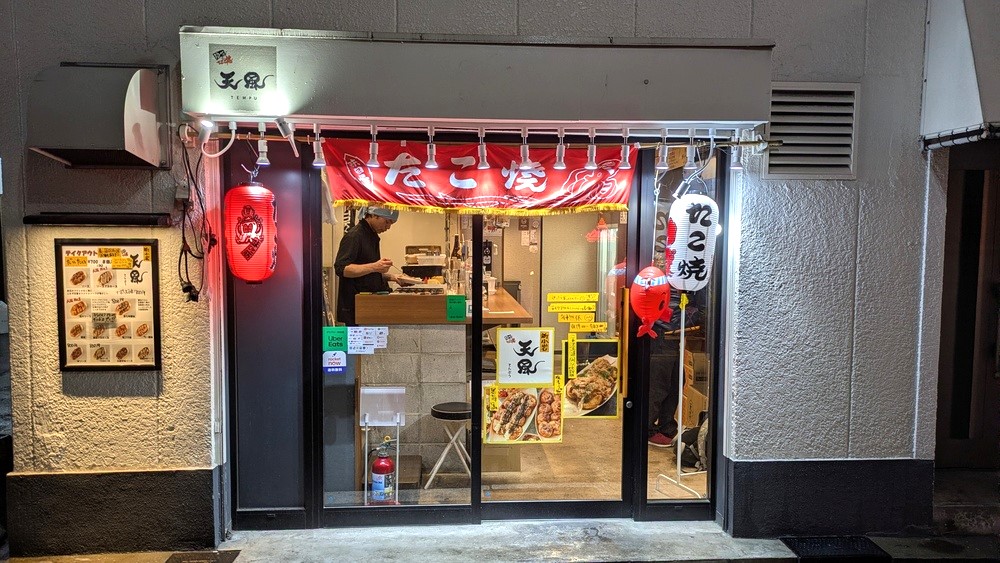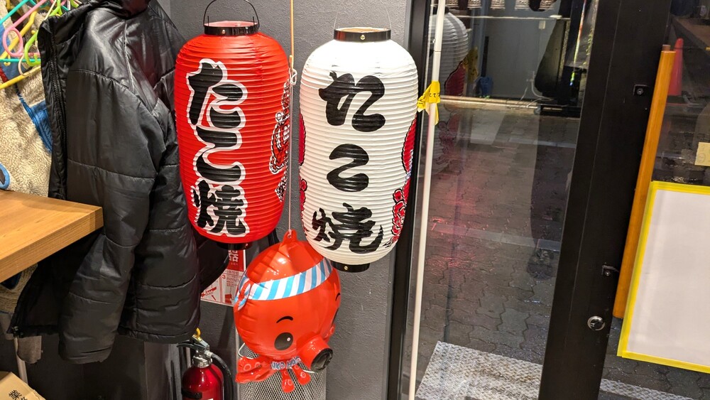 赤い提灯とたこ焼きの暖簾が目印。外からでも漂ってくる香ばしい香りに、思わず足を止めてしまいました。