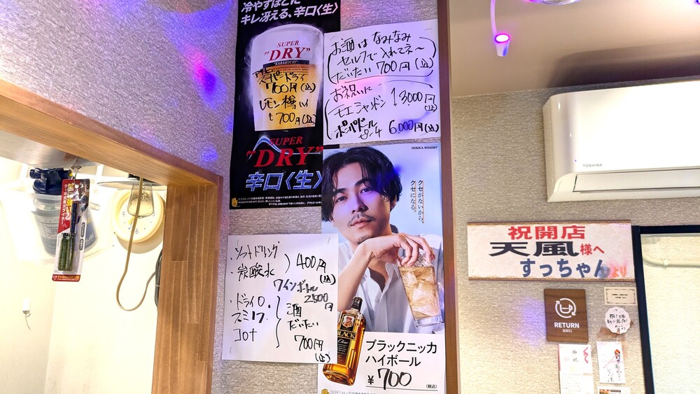 営業時間は19時から深夜2時までですが、お客さんがいる場合はそのまま営業を延長することもあるそう。